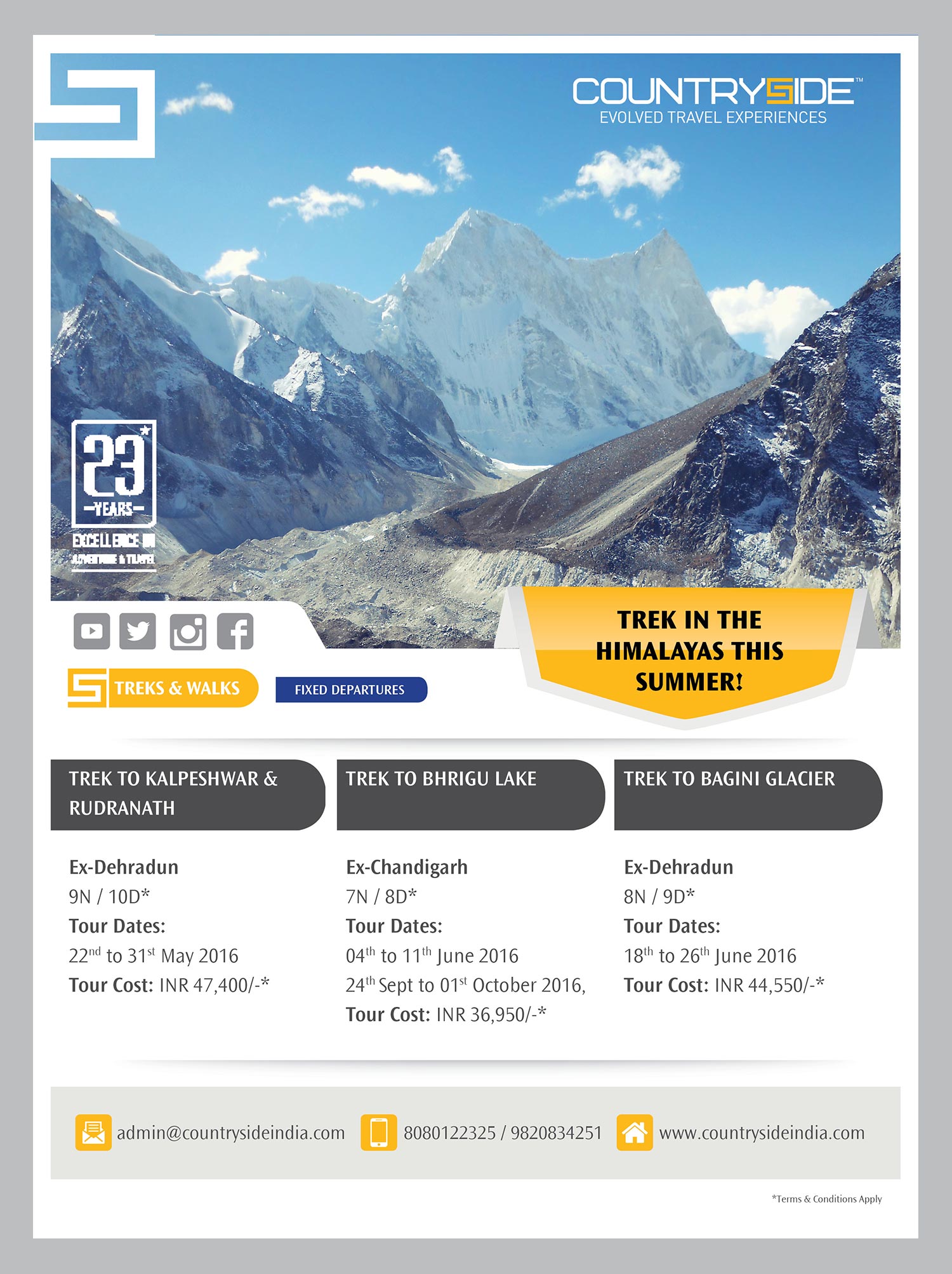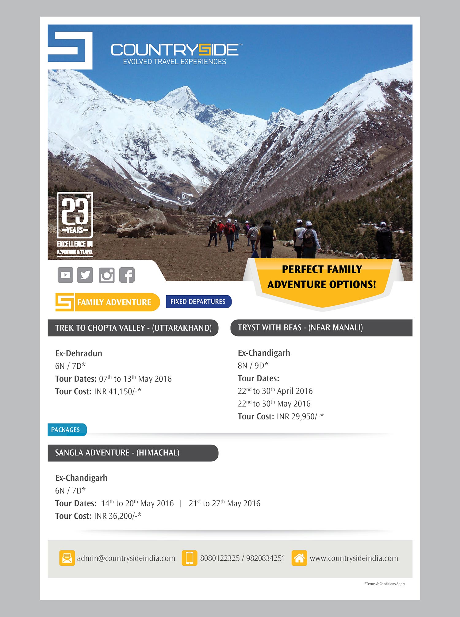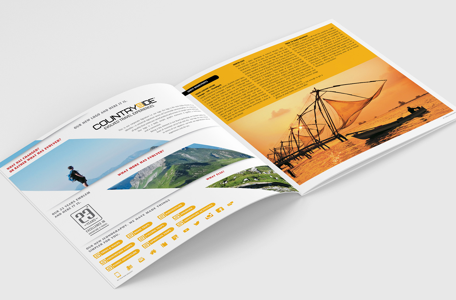 The identity was designed keeping in mind the trust and bonding Countryside had with its customers for 23 years. We had a broader positioning for the brand to accompany their wider array of products collated under one unified voice, ‘Evolved Travel Experiences’
