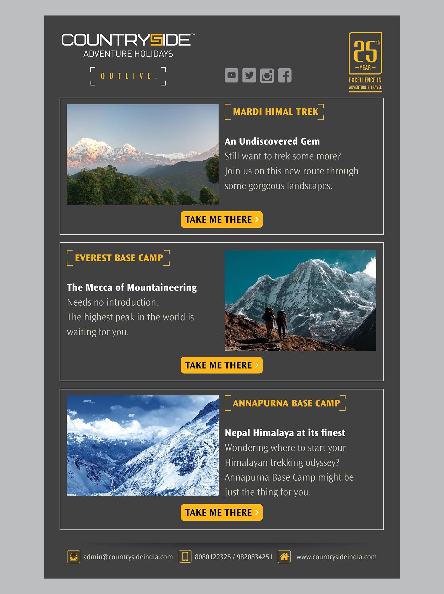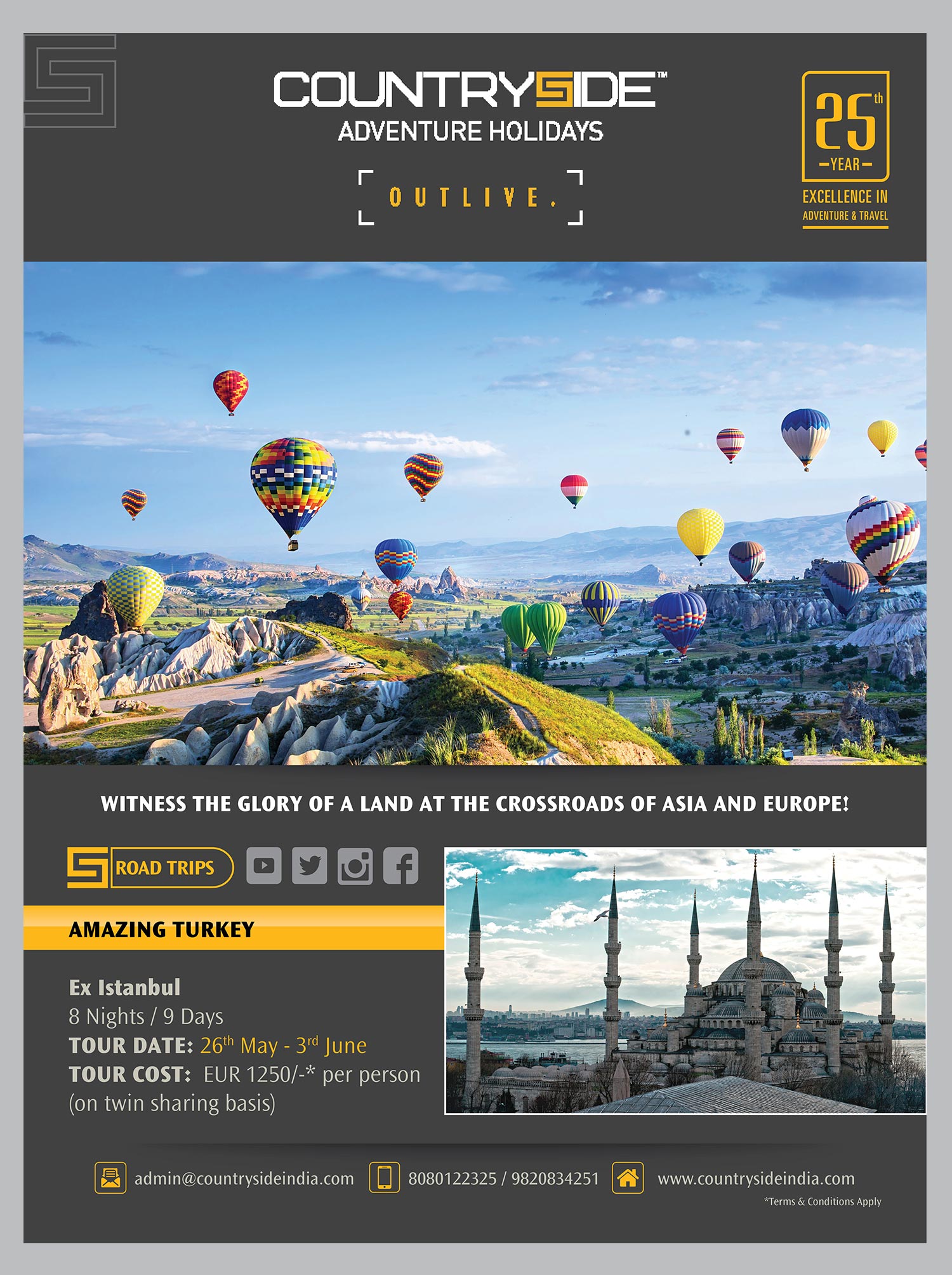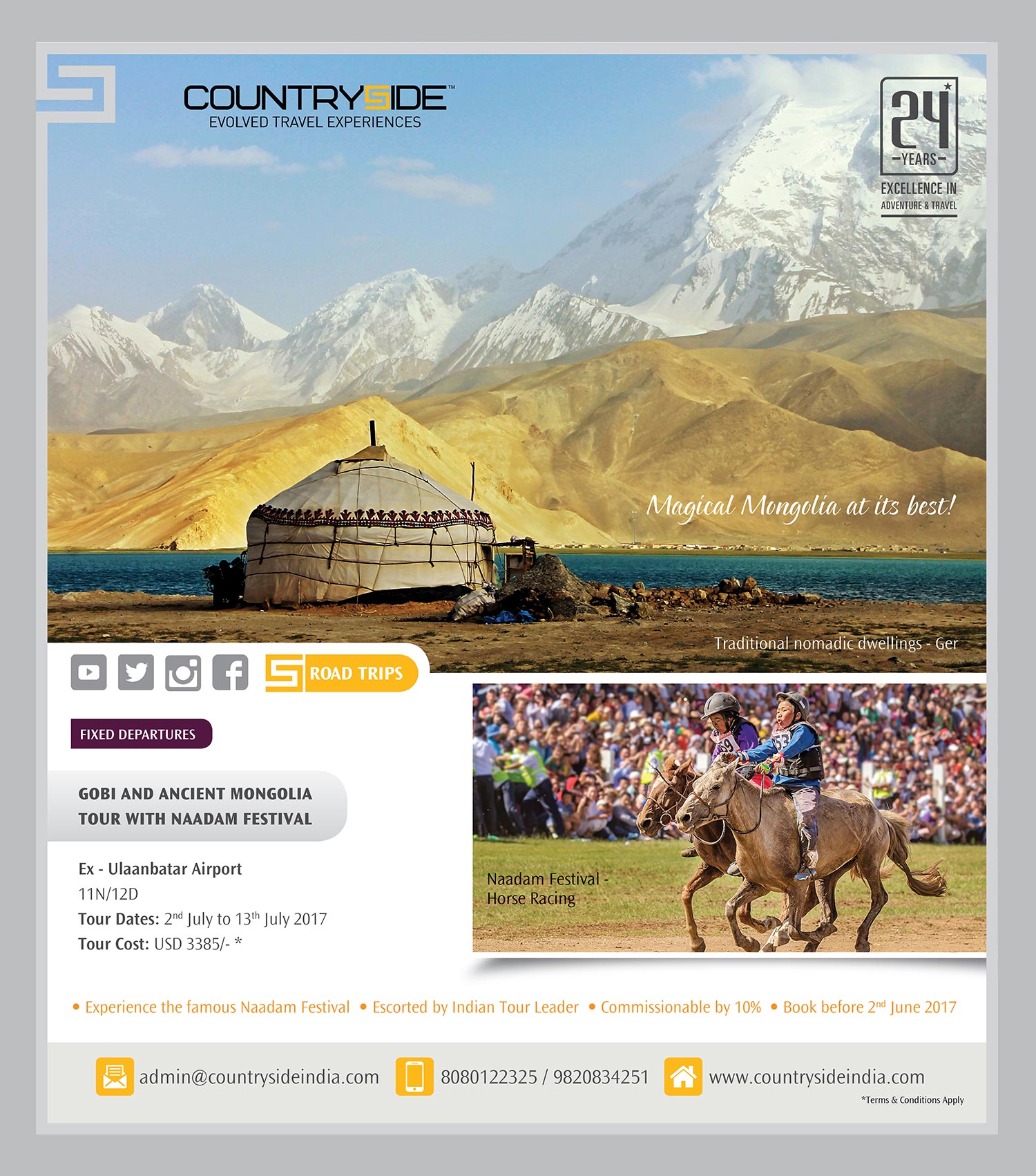 The identity was designed keeping in mind the trust and bonding Countryside had with its customers for 23 years. We had a broader positioning for the brand to accompany their wider array of products collated under one unified voice, ‘Evolved Travel Experiences’