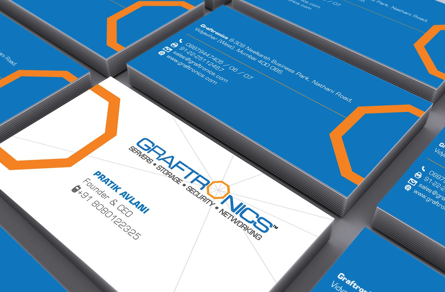 The brand language used in the stationery is clear and consistent. Even though each item has its own design, they all feel connected and clearly belong to the Graftronics family.